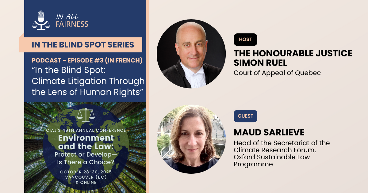 Climate change is increasingly framed as a human rights issue. In this third episode, the Honourable Justice Simon Ruel speaks with Maud Sarlieve, Head of the Secretariat of the Climate Research Forum (Oxford Sustainable Law Programme), about the rise of climate litigation and its tensions with the separation of powers. Together, they examine landmark cases such as Urgenda in the Netherlands, the Swiss Senior Women for Climate Protection case, the youth plaintiffs in Montana, and the historic 2025 advisory opinion of the International Court of Justice. What role should courts play in addressing state and corporate inaction on climate? An essential conversation at the intersection of law, justice, and climate.